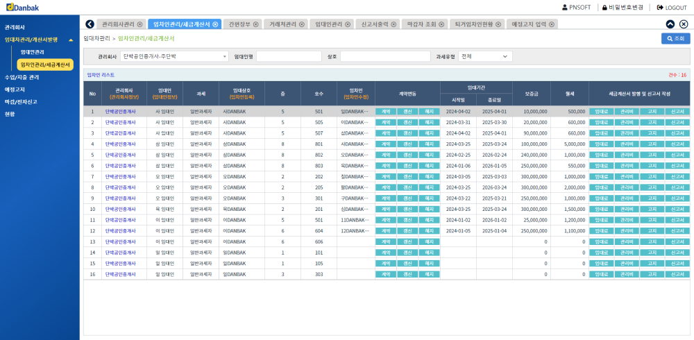 사업장별로 임차인 현황을 한눈에 볼 수 있어 참 좋더라구요~~